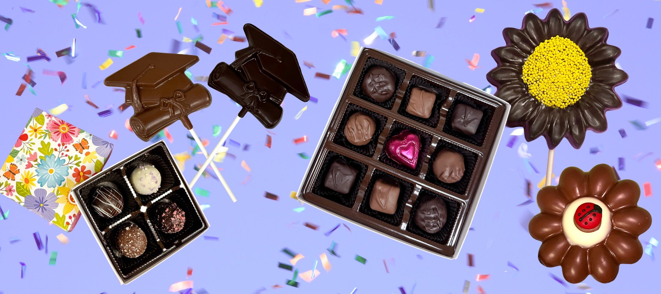 We offer a wide selection of gourmet chocolates elegantly packaged to complement the theme of your event. Our chocolates are ideal for a variety of special occasions, including birthdays, anniversaries, holiday parties, baby showers, and more!